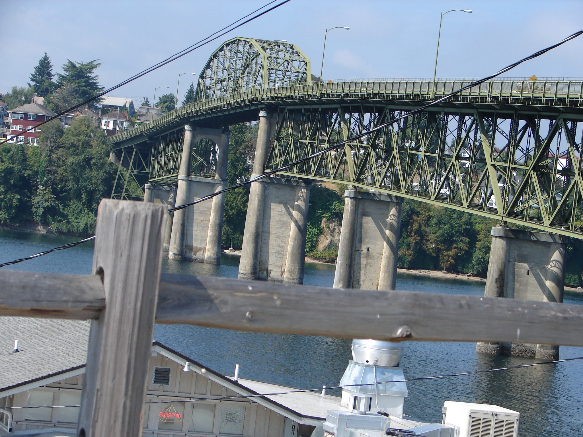 The Manette Bridge in Bremerton. This bridge was one of 2 that linked East and West Bremerton. The Manette Bridge shown here has since been replaced with a newer and much less classy bridge.